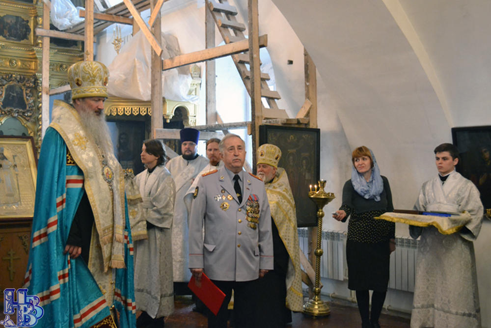В знак благодарности за помощь в реставрации оклада иконы святителя Феодосия Черниговского, а также еще одной святыни Покровского храма - Образа Спасителя - митрополит Марк вручил благотворителю Алексею Викторовичу Бердинских иконы Спасителя и Божией Матери, которые еще при жизни заказывал бывший настоятель Покровского храма протоиерей Михаил Ковальский. Довольно интересна история возвращения самого оклада иконы. Почерневший от времени серебряный оклад иконы Святого Феодосия Черниговского был найден в 2014 г. в одном из старых помещений здания УМВД России по Тульской области. Произведение искусства размером 86 на 60 сантиметров и весом почти в 4 килограмма было изготовлено в России мастерами знаменитой ювелирной фирмы Ивана Хлебникова в 1899–1908 годах из серебра 84-й пробы и представляет собой особую историческую, научную и художественную ценность. Несмотря на серьезные повреждения, его стоимость могла составлять от 70 тысяч долларов США. Специалистами пресс-службы и ветеранами областного управления МВД было проведено серьезное расследование, чтобы узнать, кому он принадлежал и как оказался среди истлевшего мусора. Постепенно удалось узнать, что имя Хлебникова наряду с Фаберже стояло среди лучших поставщиков ювелирных изделий Высочайшего Императорского Двора! Изделия его фирмы хранятся в Государственном историческом музее, Оружейной палате, украшают храмы Московского Кремля. У Хлебникова не было проходных работ. А это значило: оклад Феодосия мог украшать самые именитые церкви и музеи.