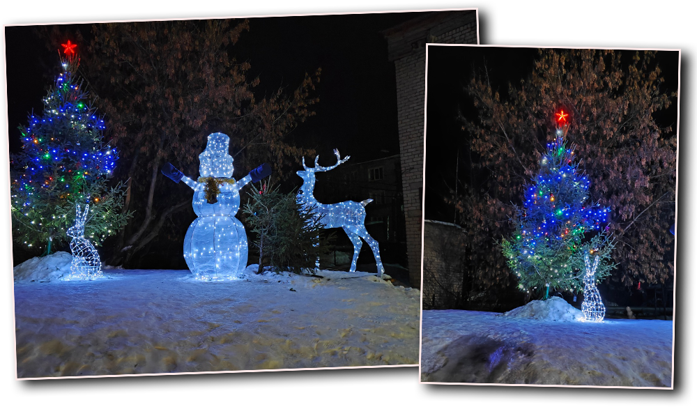 А вот во дворе домов по ул. Ленина, 58 и Энгельса, 59 живут не менее инициативные люди. Уже более 5 лет Вячеслав Стародубцев и Евгений Путинцев каждый год за две недели до праздника во дворе ставят елку и прекрасные светящиеся фигуры оленя и зайца, в этом году к ним присоединился еще и снеговик. Кстати, изготавливают мужчины их самостоятельно. Такая красота радует не только соседей, но и всех, кто ходит мимо. В новогоднюю ночь во дворе всегда играет музыка, все соседи могут выйти и поздравить друг друга с наступившим праздником. Огромное спасибо талантливым мастерам, которые делятся своим новогодним настроением с окружающими! Как замечательно, что и взрослые люди в Новый год могут почувствовать себя детьми и создать волшебную сказку своими руками. Какие замечательные традиции у наших читателей! Может, кто-то захочет перенять некоторые из них для себя, чтобы сделать Новый год еще более волшебным и запоминающимся. Поздравляем всех наших читателей с наступающим новым годом, желаем удачи и благополучия! | |