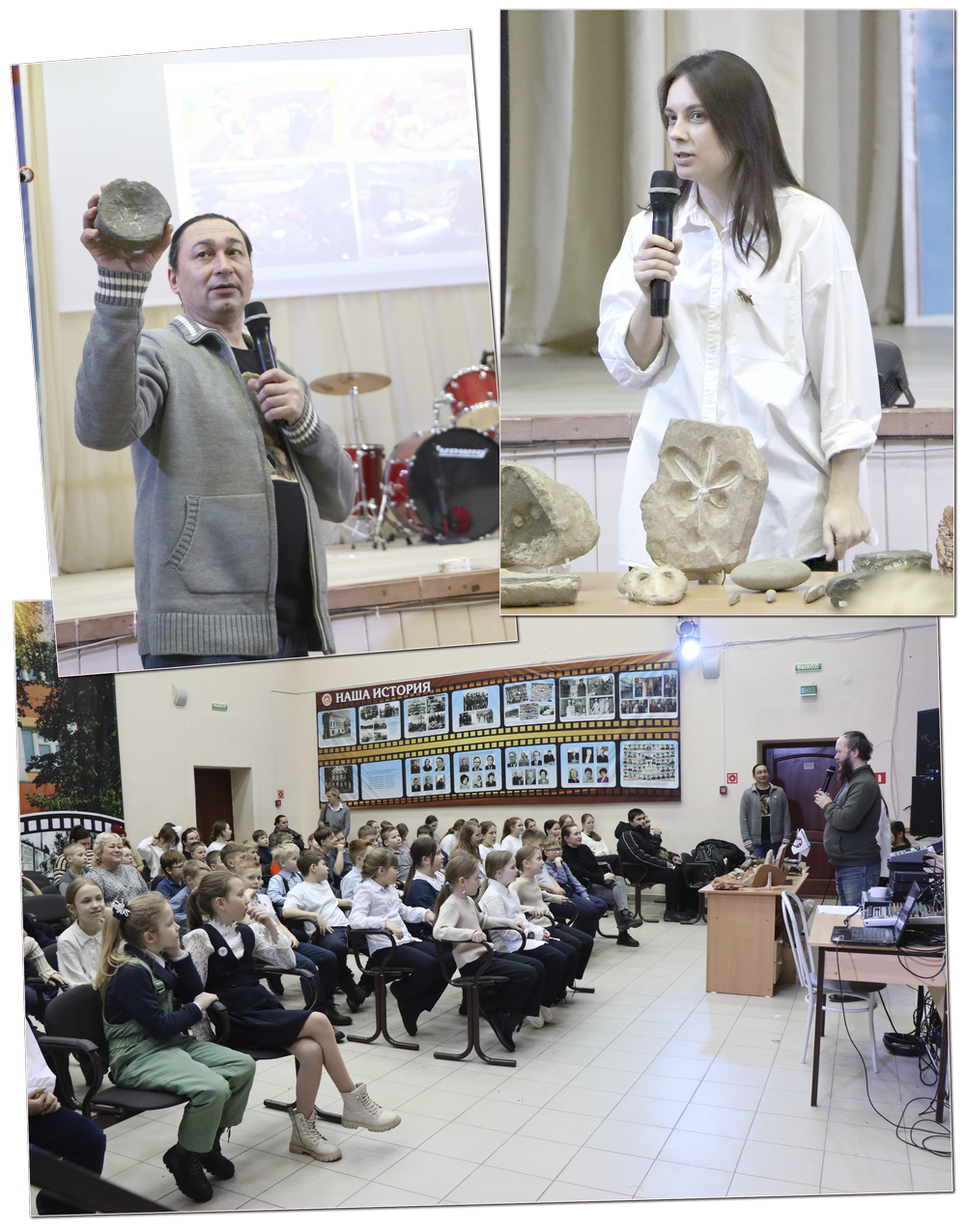 Кто из нас в детстве не интересовался динозаврами и не смотрел фильм «Парк Юрского периода»? На мероприятии у всех присутствующих была возможность узнать об очень древних животных из разных геологических эпох, живших на территориях современного Советского района Кировской области. Как оказалось, динозавры и мамонты к нам намного ближе, чем мы думаем. Ольга Санина, преподаватель техникума и организатор данного мероприятия, не только увлекается палеонтологией, но и вовлекает в это захватывающее занятие всех вокруг. Ведь найти камни пермского периода у себя под ногами может любой, а вот опознать ценную находку – далеко не каждый. Осенью 2024 года при поддержке директора техникума А.В. Тихомирова Ольга создала экспозицию «Короткая дорога к морю. Палеонтология Кировской области».В ней представлен большой информационный слайд-баннер и множество образцов находок, обнаруженных неутомимыми палеонтологами на территории Советского района. Это уже вторая экспозиция Ольги в городе, первая располагается в школе №1. О том, как началось необычное увлечение палеонтологией, какие планы на будущее, мы поговорили с палеоволонтёром Ольгой Саниной. – Ольга, не считали, сколько километров пройдено за годы вашего увлечения палеонтологией? – Даже не знаю, как ответить на этот вопрос. Много. Мы объездили всю область. Где-то пешком ходишь, где-то на машине, на лодке. Я в этом году не поленюсь и специально посчитаю километраж за сезон. – Все дети увлекаются жучками-паучками, динозаврами, но обычно это проходит. С чего началось ваше увлечение палеонтологией? – Как и у всех, с детства. Но в то время особо взять информацию было негде, углубить свои знания было невозможно. Потом, когда уже появились дети и старшая дочь Саша заинтересовалась темой мамонтов и динозавров, был интернет и возможность поискать информацию. Так мы и нашли Вятский палеонтологический музей. Именно этот музей дал нам очень много информации и показал места, куда можно съездить на раскопки. Все первые выезды начинались с ними. Затем мы стали ездить на раскопки самостоятельно, и всегда была поддержка музея. Любую находку можно было скинуть им в режиме онлайн и получить консультацию. Очень большая информационная подпитка от музея помогала нам. Параллельно я искала книги, профильную литературу, группы в соцсетях на тему палеонтологии. – У каждого палеонтолога есть своя специализация. Что изучаете вы и чем больше интересуетесь? – Меня, конечно, больше интересует четвертичный период, мамонтовая фауна. Большинство людей интересуются более ранними периодами, когда каждая находка вызывает удивление, ведь она хранилась миллионы лет! Но мне больше нравится поверхностный сбор, когда ты просто идёшь и собираешь, ничего не копаешь. И «четвертичка» в этом идеальна! Когда ты просто поднимаешь кость и понимаешь, что в твоих руках история. Это более визуально, наглядно, не надо ничего препарировать из куска породы, когда изначально непонятно, что там внутри. А здесь ты сразу видишь, что нашёл. Поверхностный сбор самый доступный. – Как выглядит работа палеоволонтёра? – По палеоволонтёрству вообще разбег огромный! Здесь можно применить любой свой талант. Совсем просто: хотите классное хобби, такое, чтобы получить кучу путешествий и знакомств? Пожалуйста! Хоть с рюкзаком, хоть чисто городских, а мож
