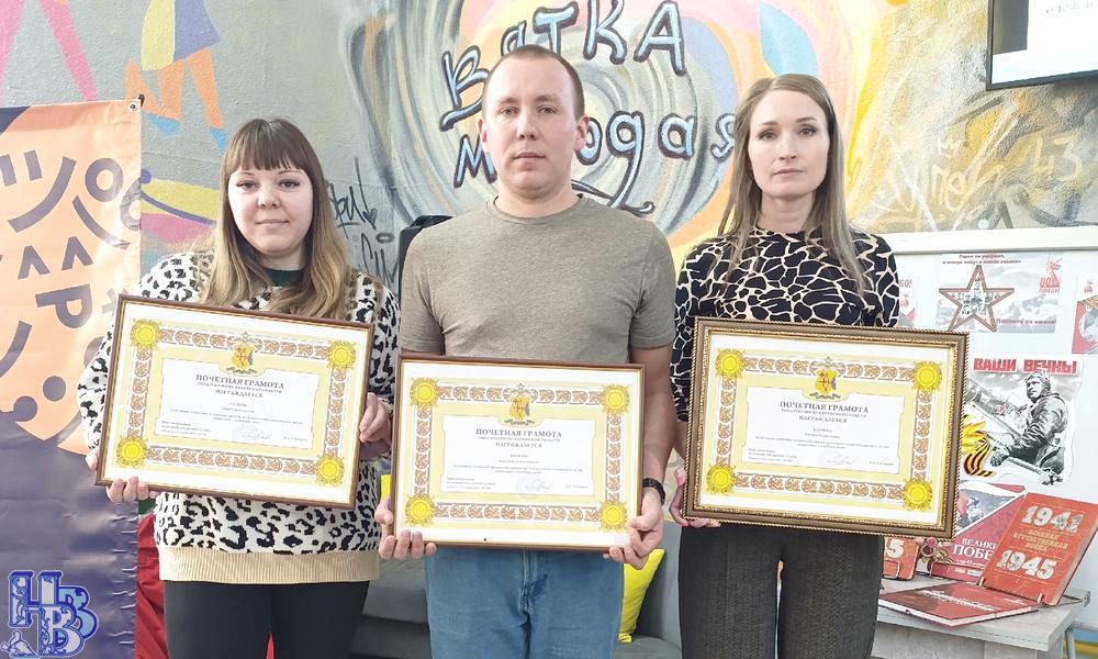 Как сказали волонтёры отряда, каждый новый доброволец – это еще одна возможность спасти чью-то жизнь, подарить надежду семье и близким. «Спасибо всем за теплый прием и интерес к нашему делу! Вместе мы сможем больше!» – обратились они к присутствующим. Организаторы мероприятия также привезли Почётные грамоты УМВД России по Кировской области «За активное содействие органам внутренних дел в выполнении возложенных на них оперативно-служебных задач», которые были вручены нашим землякам: Анне Гордеевой, Александру Ивойлову и Евгении Климовой. Герои среди нас! На фото: Анна Гордеева, Александр Ивойлов, Евгения Климова