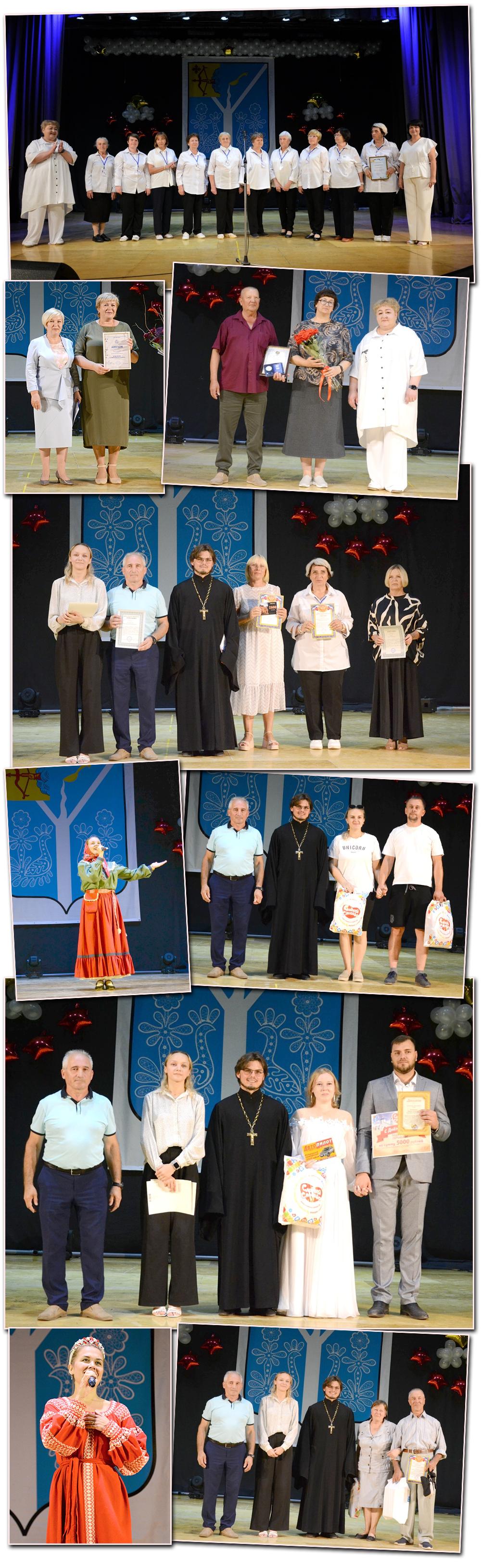 В течение всего года активные и жизнерадостные советчане совершали множество добрых и важных дел. Их старания и инициативы не остались незамеченными – на празднике почётные гости выразили им особую благодарность. Первой к присутствующим обратилась глава Советского района Марина Ивановна Баранова: «Наш город, несмотря на все трудности, продолжает развиваться. Благоустраиваются территории и пространства, появляются новые объекты. И это всё было бы невозможно без активного участия населения нашего славного города». Она поблагодарила инициативных граждан, оказывающих помощь и поддержку, и поздравила всех причастных с праздником Воздушно-десантных войск. От имени министра внутренней политики Кировской области Д.С. Иконникова выразила признательность группе активных жителей, которые всё свое свободное время посвящают помощи бойцам, находящимся в зоне СВО, – волонтёрам объединения «Помогаем СВОим». Зал аплодировал им стоя. В ответном слове Лариса Михайловна Типухина также поблагодарила за поддержку и уважение со стороны жителей города. Ярким событием стало вручение общественной награды – медали «За любовь и верность» семье Сергея Александровича и Маргариты Ивановны Роженцовых. Также им была вручена грамота за долгую историю семейного союза, крепость отношений, основанных на любви и верности, достойное воспитание детей! Глава Советска Валерий Анатольевич Недопёкин поздравил жителей с Днём города, отметив, что этот праздник объединяет всех вне зависимости от возраста, вероисповедания и профессии. Он подчеркнул, что главная ценность города – его трудолюбивые и активные жители, сохраняющие красоту Советска и передающие любовь к родному краю будущим поколениям. Валерий Анатольевич поблагодарил спонсоров за постоянную поддержку и особо отметил неравнодушных руководителей – Галину Васильевну Южакову, Татьяну Алексеевну Порубову и Андрея Владимировича Тихомирова, всегда готовых прийти на помощь. К поздравлениям присоединился почётный гражданин Советска Валерий Александрович Меньшиков – профессор, доктор технических наук, генерал-майор, заслуженный деятель науки РФ, лауреат премии Правительства РФ. Он пожелал жителям крепкого здоровья, личного счастья, а городу – процветания и всё более заботливого отношения. С поздравлением выступил и настоятель Успенского храма Советска иерей Михаил Пентин. Он поблагодарил жителей, которые делают город чище, красивее и уютнее, пожелал всем труженикам помощи Божьей и напомнил: каждому стоит задуматься, что он оставит после себя будущим поколениям. Между творческими номерами жителей поздравила председатель Советского районного отделения Союза женщин России Татьяна Алексеевна Порубова: «В единстве наша сила! Если мы вместе берёмся за дело, нам по плечу любая задача». Она пожелала горожанам мира, добра и благополучия, а также поделилась радостной новостью: «Союз женщин Кировской области ежегодно проводит конкурс «Женщина года». Наше отделение традиционно представляет участников, и в этом году победителем районного этапа и участницей областного стала директор Советской межбиблиотечной системы Анна Борисовна Косолапова». Коллективы и сольные исполнители РДНТ на протяжении всего мероприятия радовали гостей красивыми творческими номерами: «Заплетися, плетень», «Анют