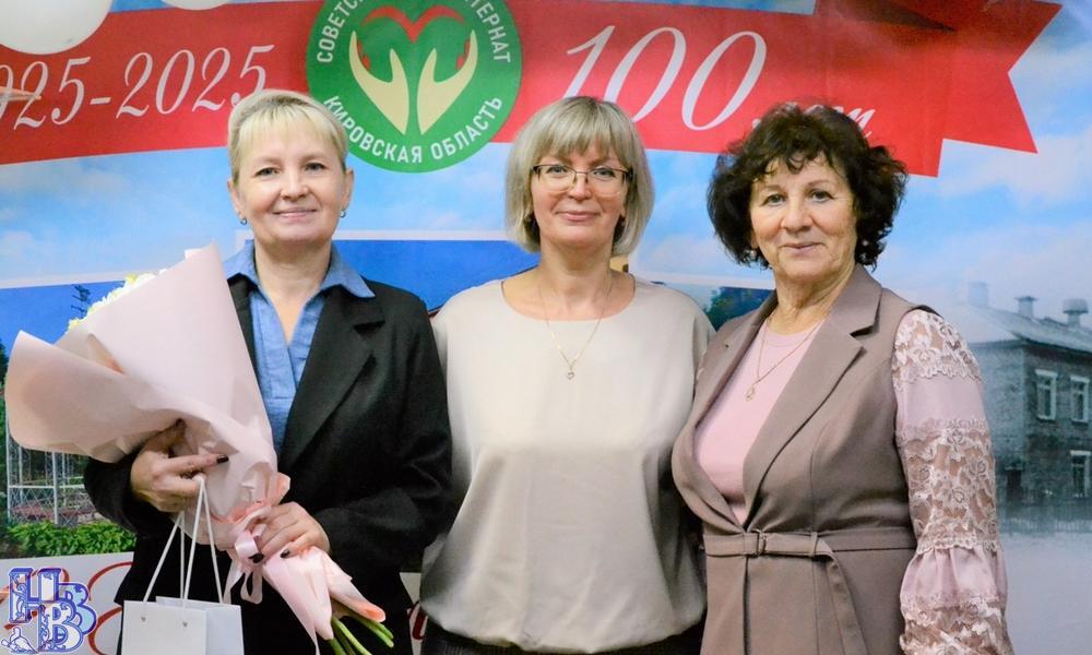 Почётной грамотой Министерства социального развития Кировской области отмечены санитары: Елена Владимировна Овчинникова и Людмила Васильевна Юсупова. Благодарственными письмами Министерства социального развития Кировской области отмечены: кастелянша Нина Николаевна Минина, специалист по персоналу Ольга Николаевна Жданова, медицинская сестра Оксана Алексеевна Малкова, а также санитары – Наталья Николаевна Яндулова, Татьяна Александровна Липатникова, Людмила Леонидовна Вахрушева, Наталья Александровна Зонова, Татьяна Викторовна Земерева, Евгения Николаевна Вотчицева, Оксана Анатольевна Караваева. Благодарственных писем и памятных нагрудных знаков «За верность профессии и вклад в общее дело», учреждённых в честь 100-летия Советского дома-интерната, удостоены: санитар Татьяна Геннадьевна Мизенко, старшая медицинская сестра отделения интенсивного ухода Наталья Николаевна Епимахова, палатная медицинская сестра Елена Владимировна Головина, инструктор по труду Виктор Сергеевич Шишкин, палатная медицинская сестра Людмила Сергеевна Жолобова, парикмахер Татьяна Валерьевна Южакова, палатная медицинская сестра Наталья Геннадьевна Коробейникова, санитар Ирина Евгеньевна Крупина, старшая медицинская сестра общего отделения Вера Васильевна Соковнина, главный бухгалтер Марина Николаевна Минина, кладовщик Надежда Анатольевна Багина, санитар Ольга Владимировна Роженцова, санитар Лидия Владимировна Чистопашина, палатная медицинская сестра Татьяна Васильевна Бастракова, водитель Николай Георгиевич Роженцов, электромонтёр Владимир Михайлович Хитров, санитар Надежда Геннадьевна Малькова. А.Г. Панов вручил сотрудникам награды уполномоченного по правам человека в Кировской области. Почётными грамотами были отмечены Елена Васильевна Бутина и Светлана Николаевна Вылегжанина, благодарственными письмами – Светлана Александровна Протасова, Екатерина Вениаминовна Сивакова, Вера Васильевна Соковнина и Людмила Ивановна Уланова. Каждая награда – признание огромного труда, ежедневной заботы и душевного тепла, которые дарят подопечным работники дома-интерната. Дом, где живет забота За вековую историю Советский дом-интернат стал надёжным приютом для сотен людей. Его двери открыты для пожилых и тех, кто нуждается в особой заботе. Но главное слово в его названии – «дом». Здесь можно найти тепло, понимание, заботу и почувствовать себя частью большой семьи. Благодарим всех работников за преданность своему делу. Вы выполняете труд, который требует не только профессионализма, но и огромного сердца. Пусть вас никогда не покидают здоровье, сила, терпение и энергия, а дом-интернат процветает ещё многие десятилетия!