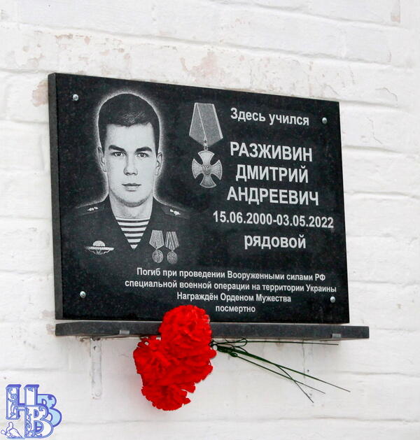 Небольшое одноэтажное здание школы №4. Тихий двор, знакомые окна, школьный звонок. И – взгляд. Молодой, открытый, мужественный. Лицо солдата на мемориальной доске встречает каждого, кто переступает порог школы. Это Дмитрий Разживин. Выпускник. Герой. Герой нашего времени.