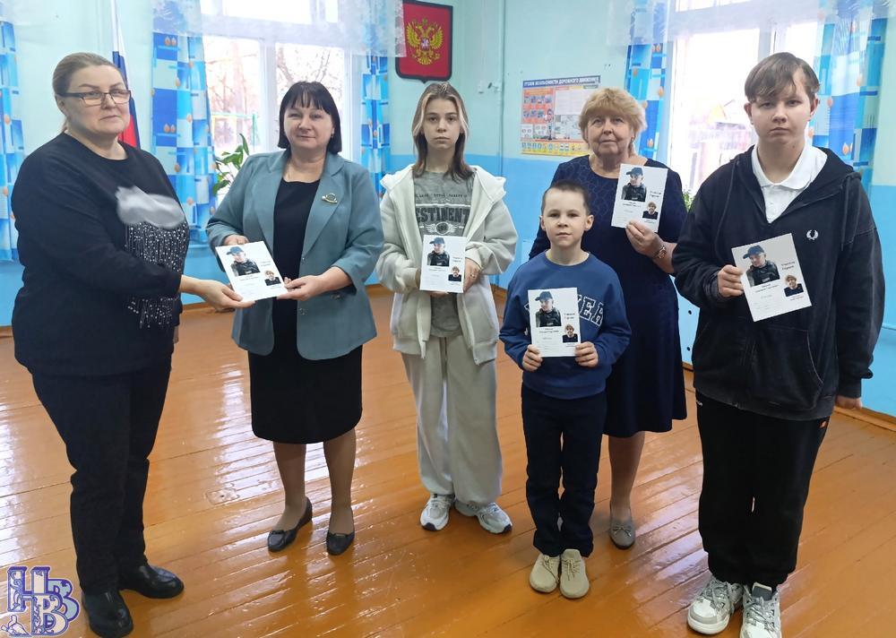 И за каждым героем стоит его учитель – тот, кто учил читать и писать, воспитывал характер, верил, переживал и любил. Не случайно символом проекта стала тетрадь – привычная школьная принадлежность, которая почти всегда в руках ученика. Тетрадь – это не просто исписанные страницы. Это отражение старания, усердия, отношения к жизни. Есть тетради для контрольных и проверочных работ, а есть те, в которых хранят мысли, чувства, важные события – чтобы спустя годы вновь пережить прочитанное. Такие тетради становятся хранителями памяти. Именно такие памятные тетради – как наследие, как связующую нить между школьными годами вчерашних мальчишек и сегодняшними героями страны – в этот день передали Анне Сергеевне Власовой и Ирине Владимировне Мешковой. Чтобы память жила. Чтобы имена героев звучали. Чтобы новые поколения знали, какой ценой завоёвывается мир и каким высоким смыслом наполнено слово «Родина». Позднее эти тетради будут вручены семьям погибших как знак глубокой благодарности и бережной памяти. Особенно трогательным стало выступление Анны Сергеевны Власовой, поделившейся тёплыми воспоминаниями о своих учениках – Александре Жолобове и Владимире Кузнецове. Закончилось мероприятие передачей волонтерами писем и талисманов, изготовленных руками учеников Ильинской школы. Эти искренние, наполненные теплотой подарки будут отправлены вместе с гуманитарной помощью нашим бойцам в зону СВО. Память не знает расстояний В тот же день уже в меньшем составе делегация отправилась в далёкую деревню Воробьёва Гора – в маленькую школу, воспитавшую ещё одного героя специальной военной операции, Дмитрия Сергеевича Зевахина. Дорога была неблизкой, но каждый понимал: память не знает расстояний, а подвиг не измеряется масштабом населённого пункта.