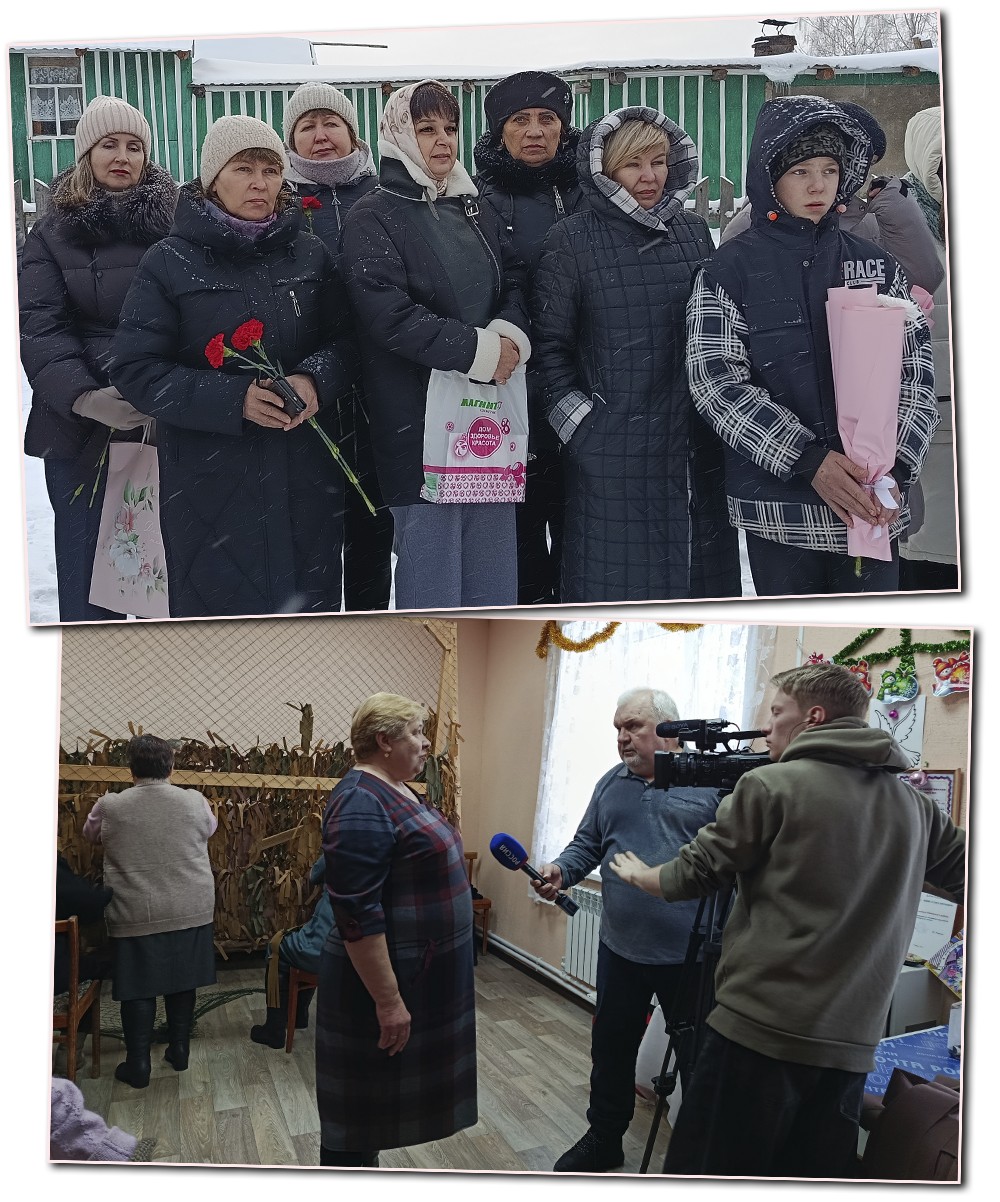 Эти кадры стали итогом насыщенного и по-настоящему значимого для каждого жителя дня. Мы стали свидетелями его главных событий, побывав в Обухове в составе делегации из Советска во время работы съёмочной группы. Съёмки начались в «Добром месте» – так здесь называют помещение, где работают волонтёры. Комнату для них предоставил председатель колхоза «Ленинец» А.И. Машкин, и сегодня она стала настоящим штабом добрых дел. Женщины старшего поколения плетут маскировочные сети, «браслеты выживания», вяжут носки, собирают гуманитарную помощь, организуют различные акции в поддержку бойцов и членов их семей. Глядя на них, понимаешь, почему федеральные журналисты выбрали именно Обухово. Здесь помощь СВО – не акция и не отчёт, а неотъемлемая часть жизни. Волонтёры села давно и тесно сотрудничают с объединением «Помогаем СВОим» из Советска, и за это время между ними сложились по-настоящему тёплые дружеские отношения. Не случайно координатор сбора помощи военнослужащим в Советском районе В.В. Пестова отметила: «Обухово стало для нас родным. Мы стараемся активно принимать участие в ваших мероприятиях. Спасибо Александру Ивановичу Машкину, который оказывает нам большую помощь». Имя председателя СПК-колхоз «Ленинец» Александра Машкина звучало в этот день не раз – и в кадре «Россия 24», и в живом разговоре. Его роль в жизни села трудно переоценить. Создание рабочих мест, поддержка волонтёров, участие в общественной жизни, внимание к людям – всё это делает колхоз опорой села, а самого руководителя – человеком, которого здесь уважают и на которого равняются. Дальнейшие события этого дня перенесли нас в Обуховскую среднюю школу. Именно здесь телевизионный сюжет приобрёл особую глубину. В школе прошла торжественная линейка в рамках проекта «Учителя Героев», посвящённого выпускникам, погибшим при исполнении воинского долга. Председатель Совета женщин Советского района Т.А. Порубова сказала слова, которые, уверена, откликнулись каждому: «Проект «Учителя Героев» – о том, как подвиг начинается ещё со школьной парты. Мы хотим сохранить память о героях через воспоминания учителей. Это история, которую можно взять в руки и осознать: герой – не человек из новостей, а тот, кто учился в этой школе, а его наставники находятся среди нас».