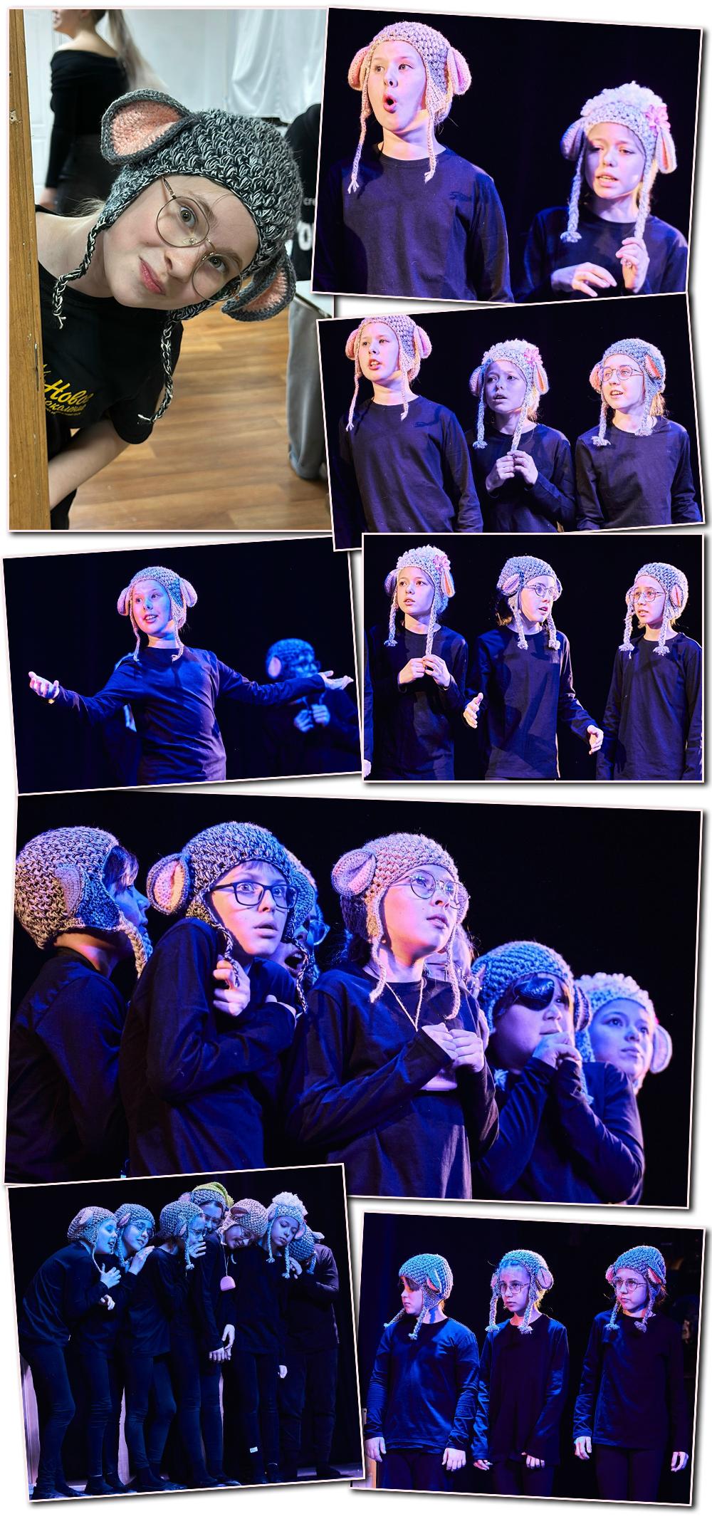 Почти через год, 21 марта, я снова получила сообщение от руководителя театра: «Людмила, здравствуйте! Мне снова нужна Ваша помощь и Ваши волшебные руки. Готовим новый спектакль – «Последняя овца» (Ульрих Хуб). Хотела бы попросить Вас создать вот такие зверошапки». К сообщению было прикреплено фото шапки-овечки. И снова – сначала лёгкий шок, ведь ничего подобного раньше не делала. Но в то же время было приятно, что вновь обратились именно ко мне… И я решилась. Дала согласие. И снова – взлёт фантазии! Я поставила себе задачу сделать зверошапки максимально реалистичными. Сроки были ограничены: за три недели нужно было связать 15 шапок – 9 овечек, 2 верблюдов, по 2 волка, козлика и быка. Основная сложность заключалась в том, что даже в интернете я не нашла подобных образцов. У меня было лишь фото шапки-овечки. С неё я и начала. Связала две шапки, сразу отправила в театр, получила «добро» – и работа закипела. В процессе я вспоминала детские мультфильмы, сказочные фильмы и старалась, чтобы у каждой шапки появился свой характер. Подбирала пряжу так, чтобы герои в этих шапках были легко узнаваемы. Правда, возникли небольшие трудности с рогами для козлика – никак не могла придумать, как их надёжно прикрепить. Поэтому решила начать с рогов для бычка (они меньше). Связала, пришила… Результатом осталась довольна. По тому же принципу сделала рога и для козлика, только немного длиннее. Как говорится, глаза боятся, а руки делают. Кстати, шапка козлика стала последней в этом заказе. В итоге его образ меня просто очаровал – с этой шапкой было особенно жаль расставаться…